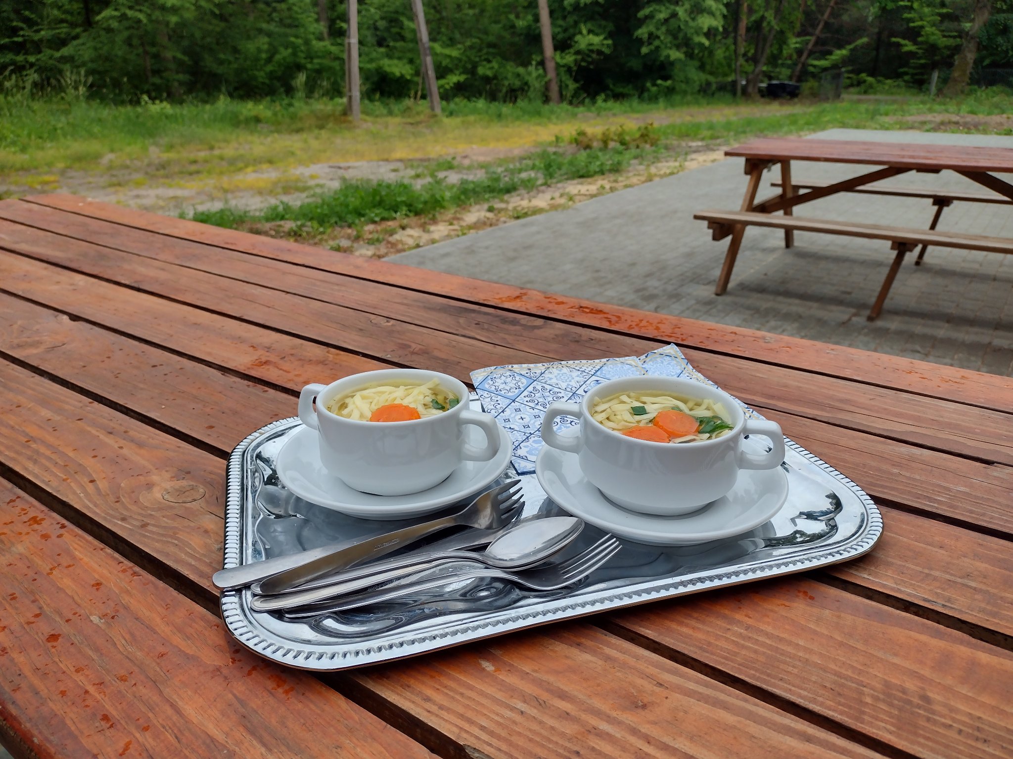W związku z rezerwacją ośrodka obiad podajemy na tarasie zewnętrznym.