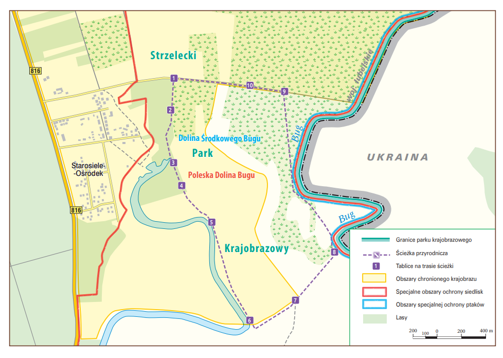 I trasa liczy 3,3 km i składa się z 14 przystanków. Idąc ścieżką możemy podziwiać między innymi drzewostany dębowe i sosnowe oraz zwiedzić szkółkę gospodarczą, w której hodowane są sadzonki.